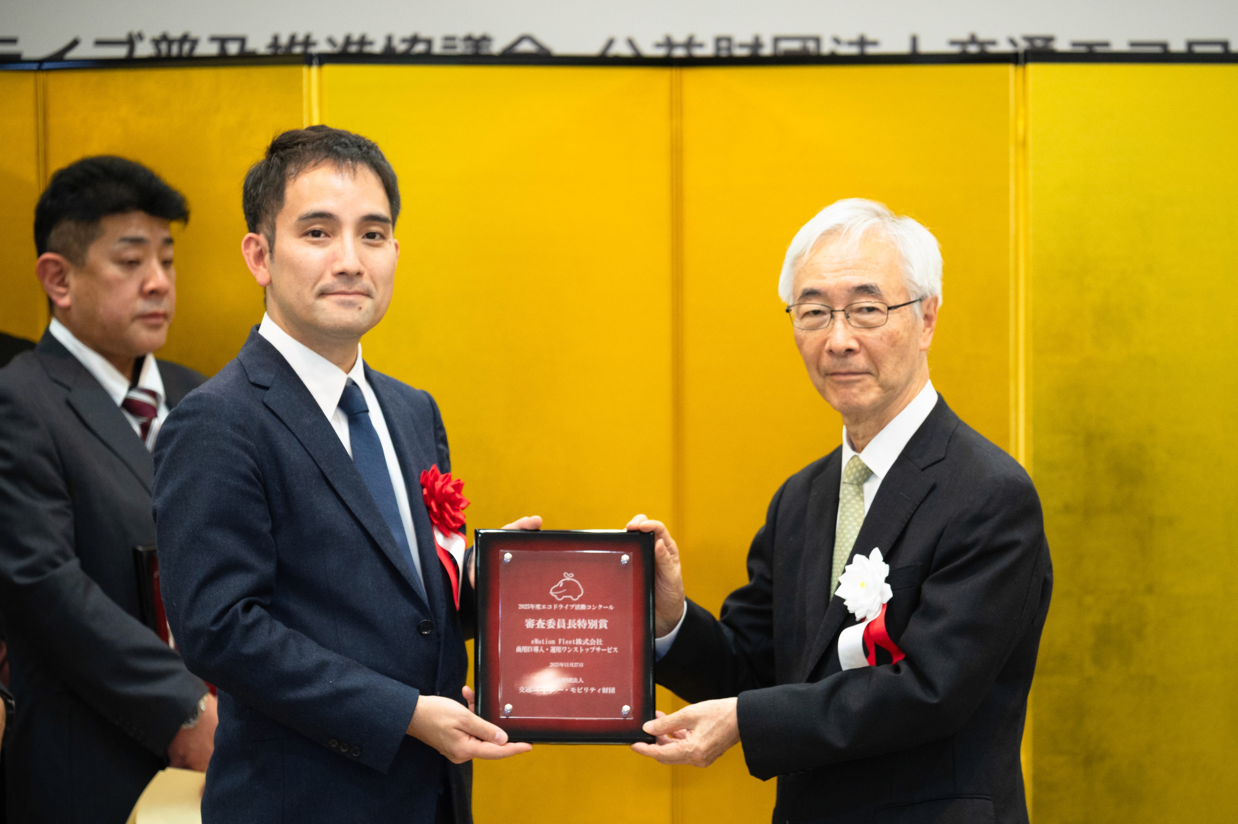 「エコドライブ活動コンクール」は、公益財団法人交通エコロジー・モビリティ財団(エコモ財団)が主催し、警察庁・経済産業省・国土交通省・環境省による後援のもと、企業・団体のエコドライブに関する優れた取組みを表彰するプログラムです。当コンクールにおいて当社は、商用EV導入を計画から運用までワンストップで支援するソリューションが、脱炭素化と経済性を両立する実効性の高い仕組みとして高く評価され、支援ビジネス・ユニーク部門にて審査委員長特別賞を受賞いたしました。